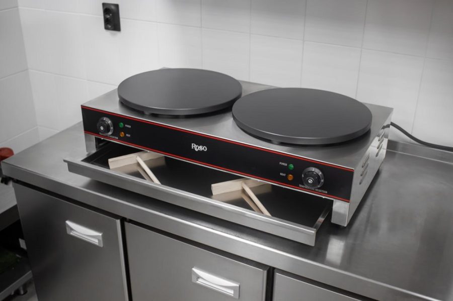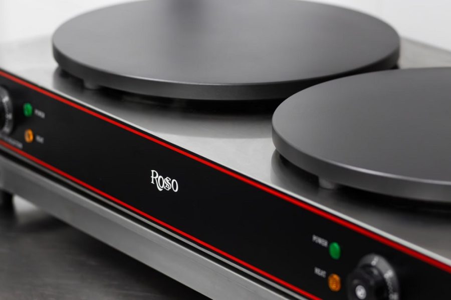 2 круглых рабочих поверхности диаметром по 400 мм, материал корпуса: нержавеющая сталь, материал жарочной поверхности: чугун