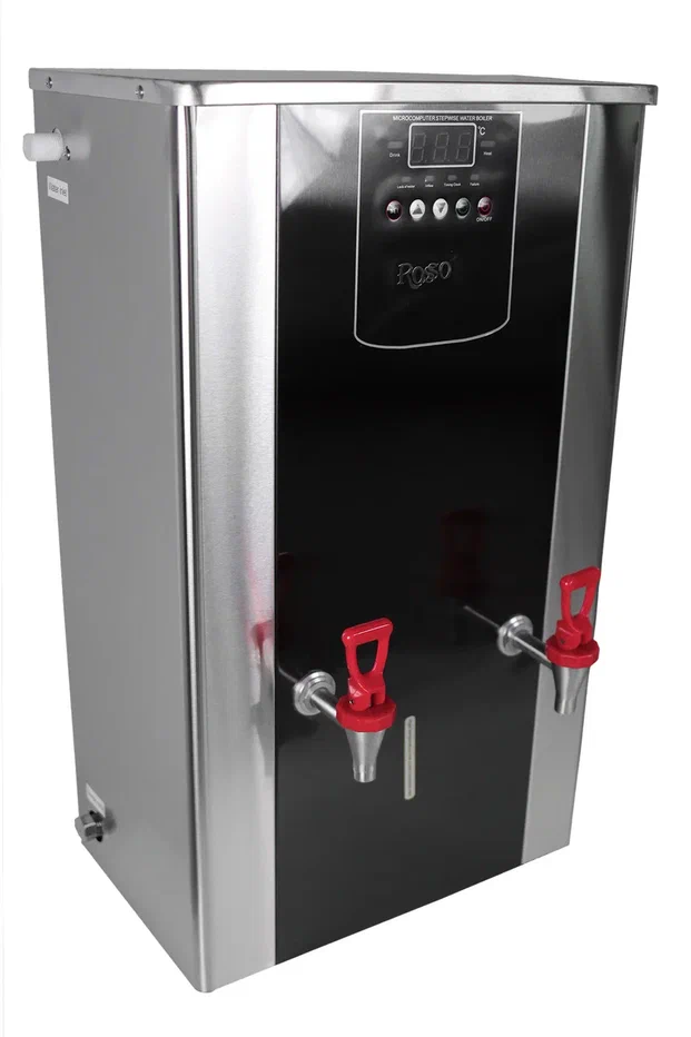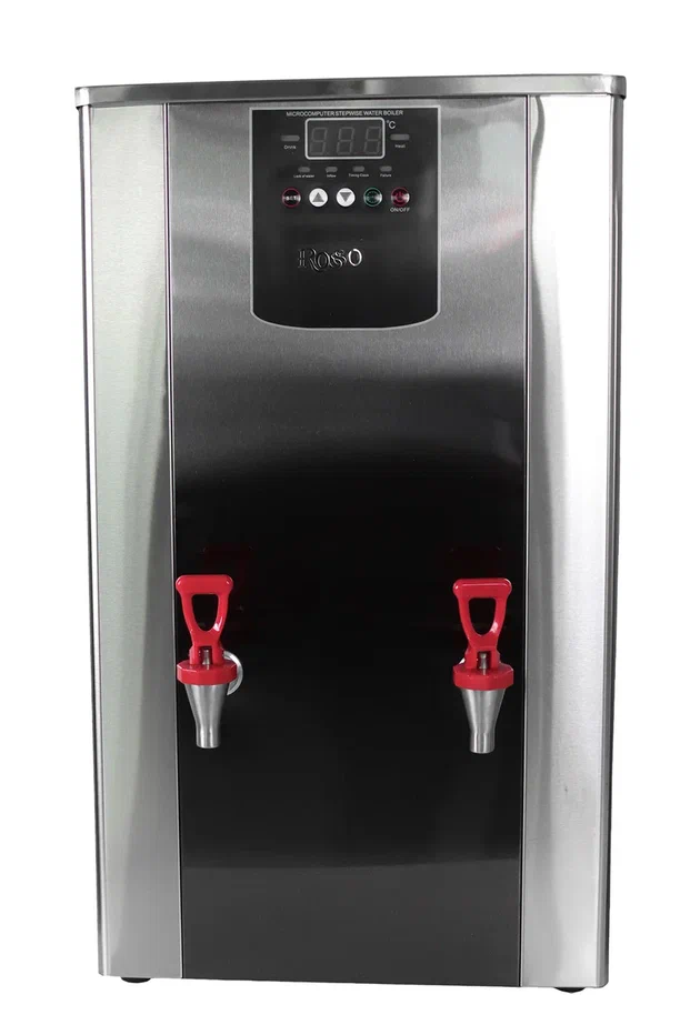 Проточный кипятильник ROSSO предназначен для быстрого нагрева воды и поддержания ее температуры в течение длительного времени. Кипятильник требует подключения не только к электросети, но и к водопроводу, и позволяет непрерывно разливать кипяток, не заботясь об уровне воды в резервуаре. Настольный электрокипятильник оптимален для линий раздачи ресторанов, кафе, столовых, закусочных. Он также идеально подойдет для приготовления горячих напитков в барах и оснащения детских садиков, школ, офисов и больниц. Кипятильник ROSSO работает по принципу ступенчатого нагрева воды. Электроды в каждой ступени посылают сигнал на микрокомпьютер, который, обрабатывая сигналы, активирует нагревательный элемент и электромагнитный клапан, тем самым регулируя температуру и объем подачи воды. Таким образом, вода, нагретая на одном уровне, закипает. Затем нагревается следующий уровень, в результате формируется ступенчатый цикл нагрева. Такая технология позволяет избавиться от повторного нагрева воды и экономит её потребление. 50л/ч